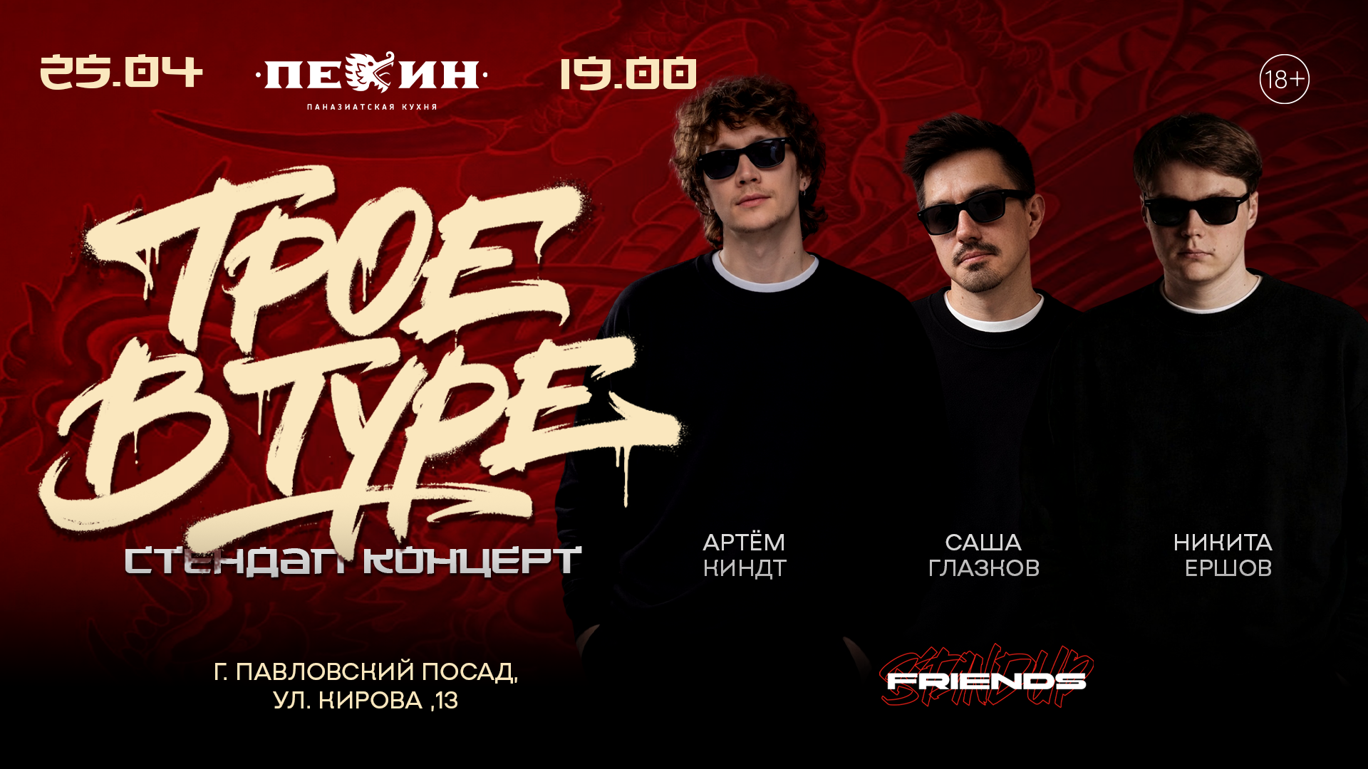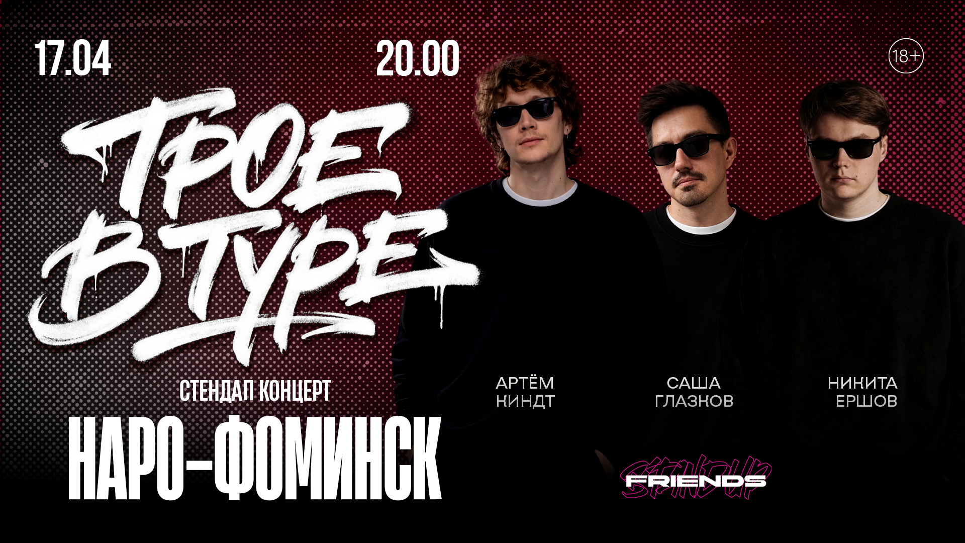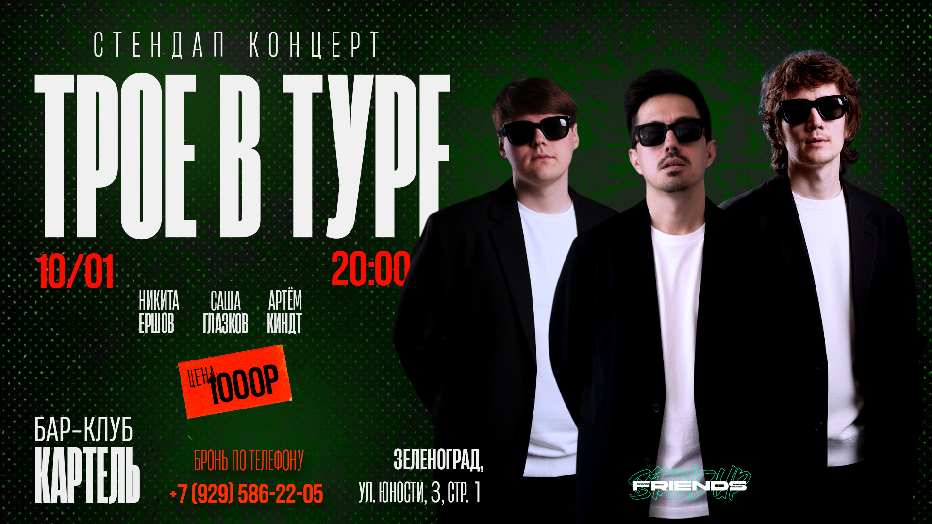 Это стендап-проект, объединивший трех комиков: Александра Глазкова, Никиту Ершова и Артема Киндта.